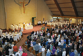 Completely filling the church, the concelebrating presbyterate and prayerful laity joined Bishop Hying in preparing for another liturgical year of Baptisms, Confirmations, and Anointings.