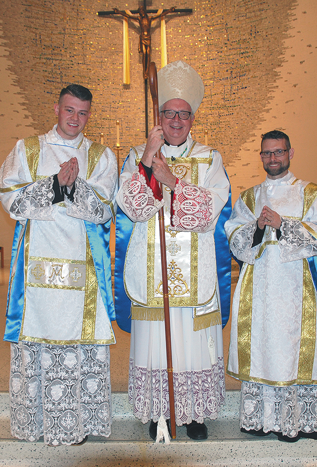 The two men, now vested in the diaconate, remained near and next to the bishop throughout the remainder of the Mass.